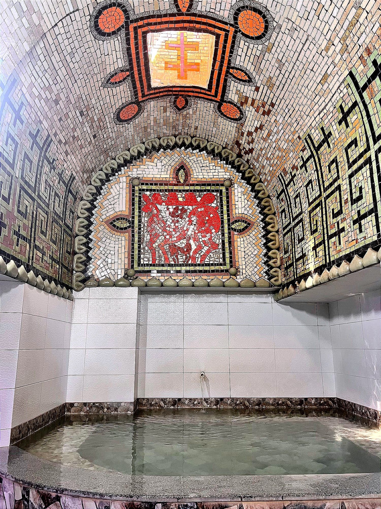 As I walked inside the beautiful, handmade Sulphuric Bath, the first thing that hit me weren’t the colorful mosaic tiles around the whole Bath, but the arid smell coming from the sulfur. It was almost like I couldn’t breathe, and that smell was enveloping my brain like a virus. After what seemed like an hour, the smell vanished, which soon revealed the beauty of the bath. The concrete slabs of the Bath were as smooth as butter and as shiny as gold. The water flowed gently and gracefully over the concrete like a waterfall. The cloud of steam and mist which floated in the air above the hot water grew larger and larger every second. It was most fascinating to see how ancient the Bath was as it had been made during the reign of Vakhtang Gorgasali in the second half of the 5th century. The most impactful site was the fine, intricate and artistic mosaic work done on the ceiling which was semicircular in shape and created using finally cut small tiles of different colors. The concept of health and artistic beauty revealed in the Bath is a memory I shall carry with me forever. The medicinal value of the bath was brought out through the mixture of hot and cold water springs.